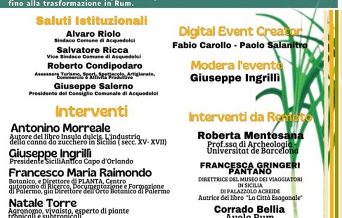 Sabato 9 agosto alle ore 18.00 presso l’Aula Consiliare del comune di Acquedolci si terrà un primo importante Convegno sulla Canna da Zucchero, il cui tema va dal recupero del patrimonio identitario, alle opportunità. L’iniziativa rientra tra le attività del European Rural Parliament Italy che ha al suo attivo tantissime iniziative, ispirati dal concetto del born in sicily e dai borghi genius loci De.Co.