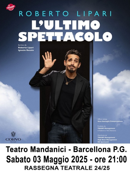Sabato 3 maggio 2025, alle ore 21:00, il Teatro Placido Mandanici di Barcellona Pozzo di Gotto (ME) ospiterà uno degli appuntamenti più attesi della stagione teatrale: Roberto Lipari porterà in scena “L’ultimo Spettacolo”, un monologo comico e teatrale capace di fondere satira, autobiografia e osservazione sociale in un racconto tanto esilarante quanto personale.