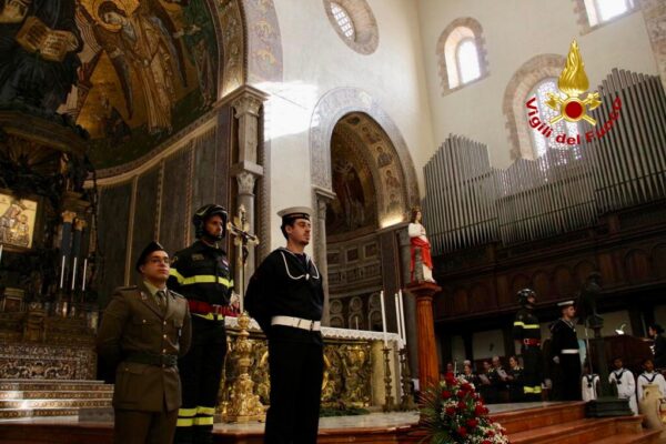 Questa mattina, i Vigili del fuoco del Comando di Messina insieme alla Marina Militare e al Reparto Artiglieria dell’Esercito, sono stati presenti a Piazza Duomo, insieme ad altre autorità civili e militari, per assistere alla celebrazione della Santa messa, in ricordo della martire Barbara.