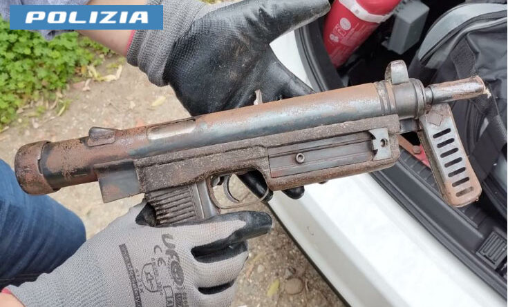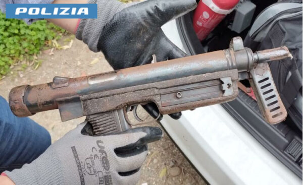 – 1 mitraglietta di fabbricazione cecoslovacca priva di numeri di identificazione, di probabile cal. 7,62, corredata da caricatore monofilare vuoto;