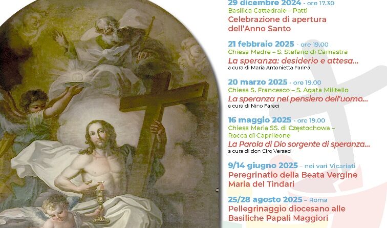 Venerdì 16 maggio si terrà, nella chiesa “Maria Santissima di Czestochowa” di Rocca di Caprileone, alle ore 19:00, la terza catechesi diocesana sul Giubileo, che avrà per tema “La Parola di Dio sorgente di speranza”. La stessa sarà tenuta da don Ciro Versaci.