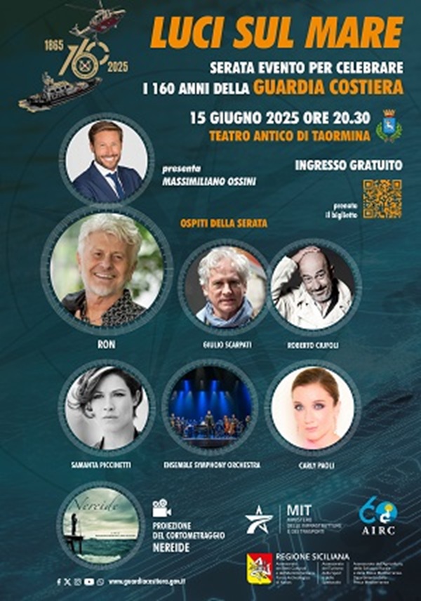 Il prossimo 15 giugno 2025, alle ore 20.30, lo straordinario scenario del Teatro Antico di Taormina farà da cornice a “Luci sul mare”, una serata evento dedicata alla Guardia Costiera, che celebra quest’anno il 160° anniversario dalla sua fondazione.