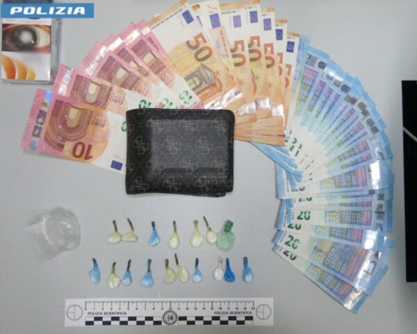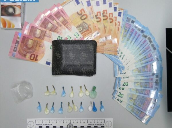 I poliziotti hanno proceduto alla perquisizione d’urgenza del ventiduenne sul posto e dell’autovettura su cui viaggiava, rinvenendo le dosi di sostanza stupefacente nella tasca dei pantaloni, ben custodite all’interno di un pacchetto di sigarette. Rinvenuta nel portafoglio e sequestrata anche la somma di circa 900 euro in banconote di vario taglio, verosimile provento dell’attività di spaccio.