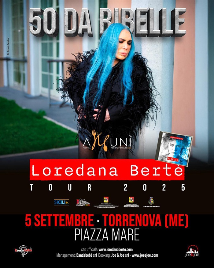 Venerdì 5 settembre Torrenova scriverà una nuova, emozionante pagina della sua storia. Sul palco del primo giorno di Amunì Festival arriverà una vera istituzione: Loredana Bertè, con il suo potentissimo tour “50 da Ribelle”.
