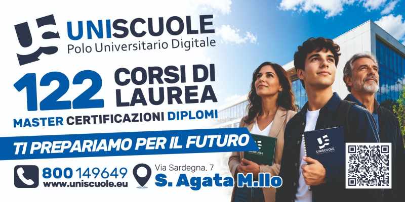 Oltre 122 corsi di laurea e una presenza capillare in tutta Italia Nebrodi (ME) – In un mondo che cambia sempre più velocemente, la vera differenza la fa una scelta: investire su se stessi. È da questa visione che nasce e cresce UniScuole, oggi una realtà consolidata nel panorama dell’istruzione digitale italiana, capace di offrire opportunità concrete a chi desidera migliorare la propria vita senza rinunciare al proprio territorio. Con oltre 122 corsi di laurea, insieme a master, certificazioni e percorsi professionalizzanti, UniScuole rappresenta una risposta moderna e concreta per chi vuole fare un passo avanti nella propria vita. Non è solo formazione. È un’opportunità reale di cambiamento. Formazione che si adatta alla tua vita Studiare oggi non può più essere un limite. Grazie a un modello innovativo basato su videolezioni sempre disponibili online, orientamento personalizzato e supporto costante, UniScuole consente di costruire il proprio percorso senza stravolgere la quotidianità.